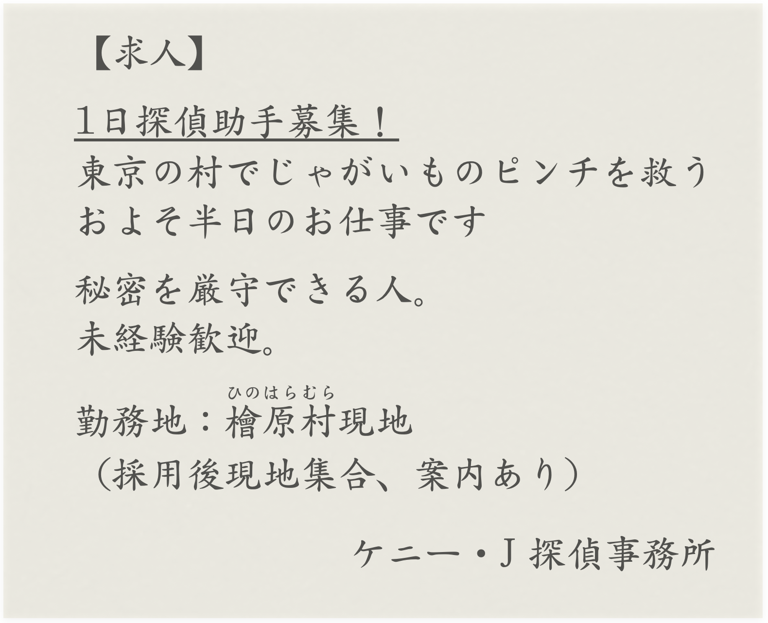 (へえ・・・探偵?それに、東京にも村があるのか。)