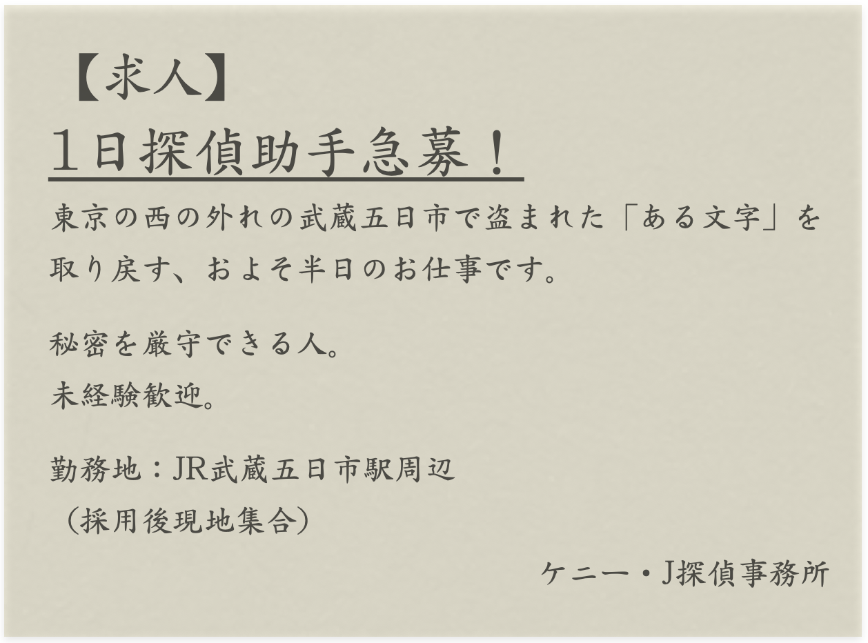 (へえ・・・探偵?・・・「文字」が盗まれたって、なにそれ)