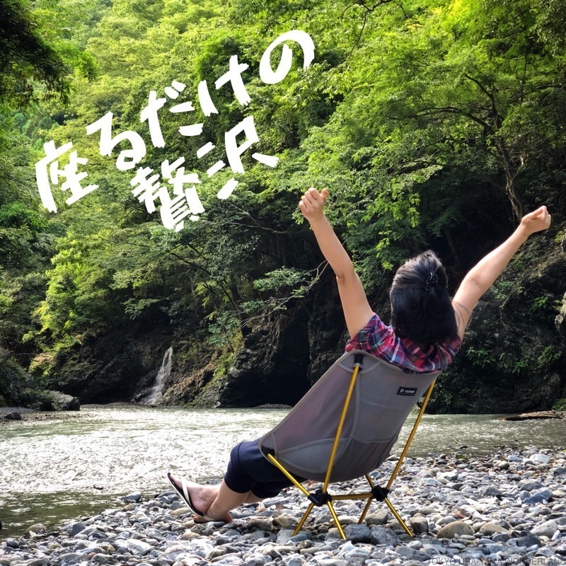 東京裏山ベースで超軽量の折り畳みチェアをレンタル(料金に込)したら、バスで現地近くまでワープ!そこは秋川渓谷の非日常スポット、渓谷と緑に包まれる超穴場スポットです。